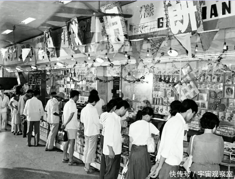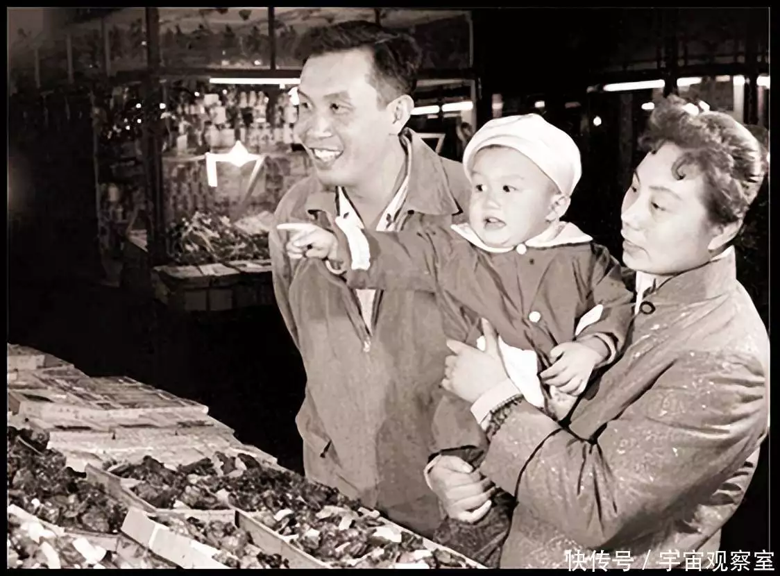 相片拍摄于1963年。这年的中秋节正好与国庆节重叠,中秋升平,节庆氛围极度热烈。相片上,一家四口人来到商场,早已开始购买过年的食品,她们嘴角洋溢美好的微笑。
